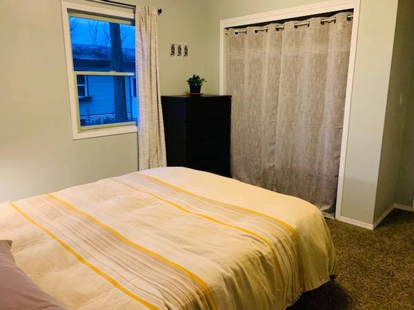 The 2-bedroom apartment is on the lower level (above ground!) of the home. There is a fully separate entrance, with 2 parking spaces, and a huge fully fenced backyard, which is great for a friendly dog. The apartment is fully furnished, W/D in unit, smart TV, kitchen essentials (and then some), and ready to move in. 3-month lease with the possibility to extend if it's a good fit. My husband and I live upstairs with our mini Aussies. There is fast fiber internet to the house, which is easy to support someone working from home. The place receives great light with big windows and is a very nice and cozy place to call home! It accommodates up to 2 people and allows a well-behaved kitty or dog with a $100 pet fee.