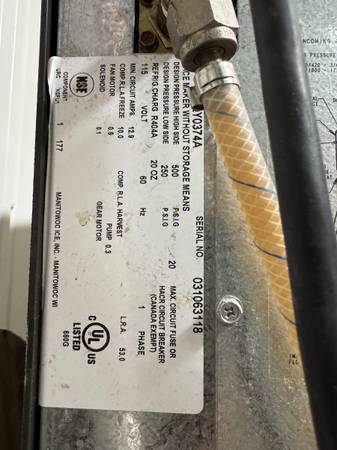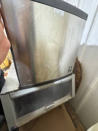 Used ice machine with bin. Machine was working when pulled it out of service. Should plug and make ice