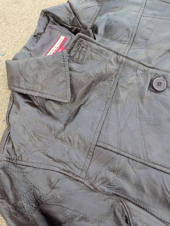 This woman's size large vintage patchwork leather jacket by Haband from the Tudor Court line features rich brown leather panels that create a classic, timeless look. Designed in a women’s size large, it offers a comfortable, flattering fit that works well for everyday wear or layered outfits. The second image provides the most accurate representation of the jacket’s true color. Well-crafted and durable, this jacket showcases quality vintage leather with character, making it a standout piece for anyone who appreciates unique, retro-inspired outerwear.