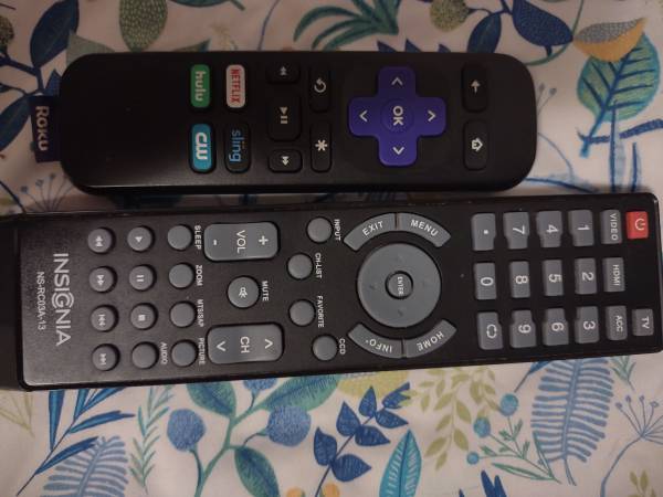 Excellent condition and great picture Insignia 32 inch television w/ remote. Roku device w/remote, power cable and Hdmi cable. Sony dvd player /w remote. Batteries not included. Simple base stand...