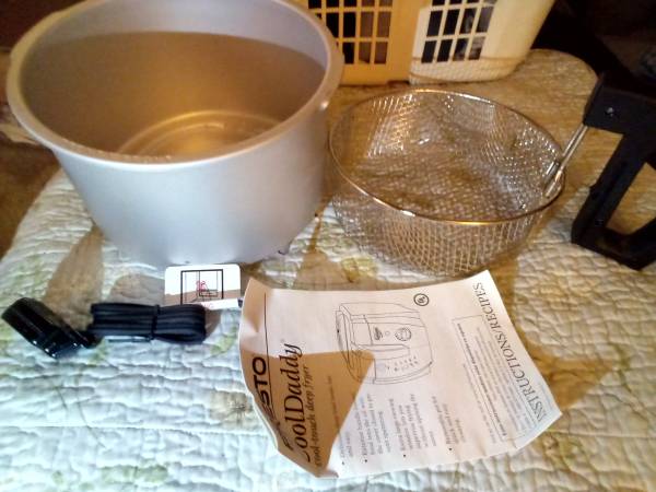 Locking cover with viewing window, exterior basked handle to lower and lift the food.