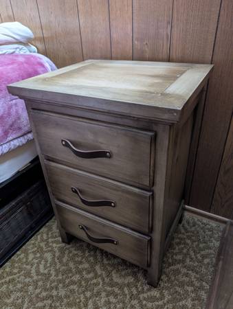 Nightstands have new leather handles on them that will last for years.