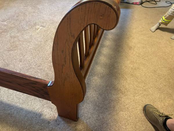Used oak king size sleigh bed for sale. It is in great shape and comes with the side rails, base supports, and two twin box springs. Asking $400 for all.