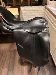 Well-cared for 17.5 wide Albion SLK black dressage saddle. No rips or tears, normal wear marks. Comfortable, deep and secure seat. $1500 OBO. Great Christmas present for the horse person in your...