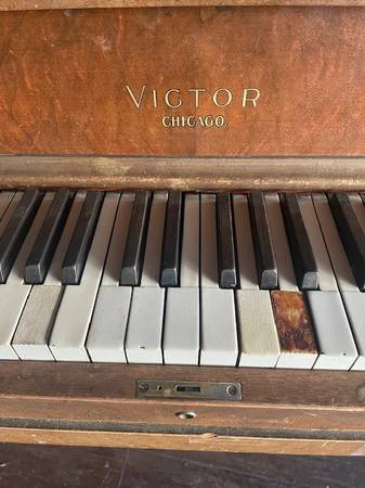 Free VICTOR Chicago upright piano. Line was produced from late 18th century and designed for years of reliable use. In the past was tuned by local master. It has some peelings. Bench included....
