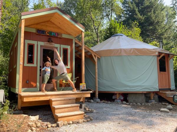 *2 doors on tiny and 2 doors on yurt (side entry doors and decks leads one into the other)