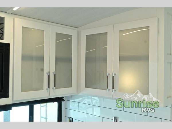 Enjoy camping with your family in this travel trailer that is perfect for a couple or a family of four. You will appreciate the private bedroom with wide entry including space saving sliding doors. The bedroom features a queen bed and wardrobes on either side to keep your clothes tidy. There is also a large pass-thru storage compartment beneath the front bedroom for your outdoor gear and more. A large slide features a Do-More dinette and 68" tri-fold sofa that is great for relaxing during the day, and can easily be transformed for more sleeping space at night. Or, you could opt. for the free standing dinette with chairs if you do not prefer booth style seating and/or do not need the added option of more sleeping space. A large rear bath features a radius shower and linen storage, plus a vanity with sink and toilet. And, the chef can choose to cook inside or outside with the outdoor kitchen that includes a Capital grill, 4.4 cu. ft. refrigerator as well as a sink all tucked under the 21' awning.