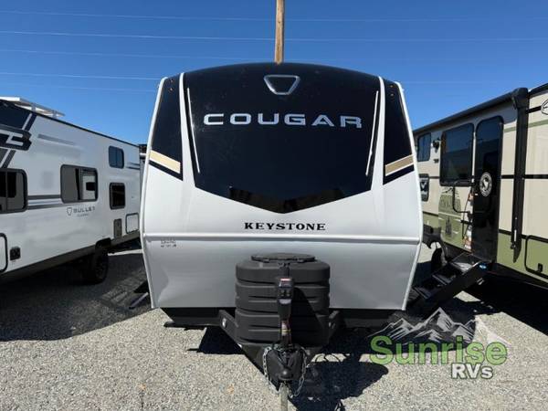 The Keystone Cougar Half-Ton fifth wheel and travel trailers are known as one of America's favorites for a reason! Some of those reasons are the exclusive features that come from Keystone, like the Winegard Air 360+ omni-directional rooftop antenna, the in-floor heating ducts, and the HyperCore composite wall construction with Vixen Fibrogloss high-gloss finish. The Cougar Half-Ton has a Climate Guard protection package with heat-deflecting white sidewalls, two roof attic vents, PEX plumbing and more to enjoy four season camping. Inside, you'll love the dimmable lighting, night roller shades throughout, shower skylight, and bedside USB outlets to keep your electronics charged.