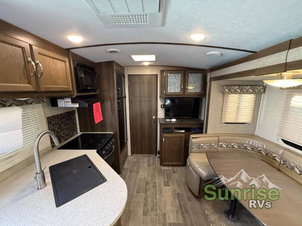 Because of the innovative and modern approach that Keystone has taken with the construction of the Premier travel trailer, you receive a unit that is both functional and comfortable. The residential in-floor heating system gives the stain-resistant Beauflor linoleum flooring a warm and cozy touch, and the 6' 11" vaulted ceilings keep the entire trailer open and inviting to all guests. If you enjoy hosting late-night get togethers with those guests, then the outdoor electric awning with LED lights is a perfect spot for you and your friends to get together as you listen to your favorite music on the exterior speakers.
