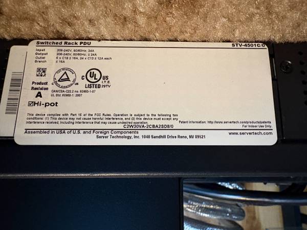 Server Technologies PDU 30 OUTLETS C2W30VA-2CBA2SD8/0 -INPUT 208-240V 50-60HZ 24A -OUTPUT 208-240V 50-60HZ 24A -6XC19 16A, 24XC13 12A EACH